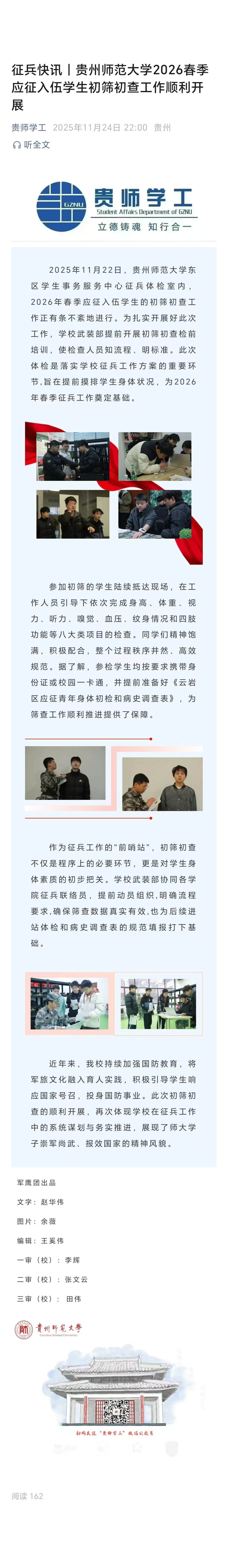征兵快讯|贵州师范大学2026春季应征入伍学生初筛初查工作顺利开展