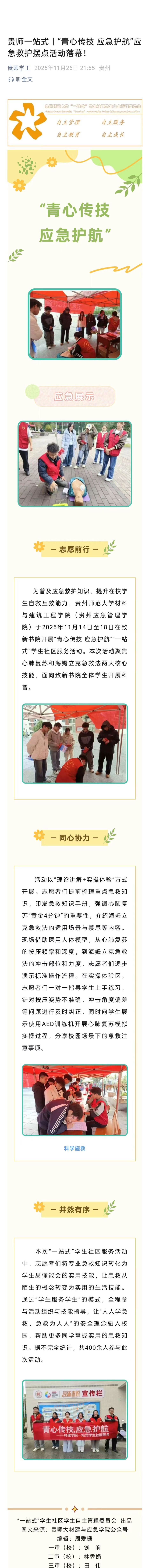 贵师一站式|“青心传技 应急护航”应急救护摆点活动落幕!