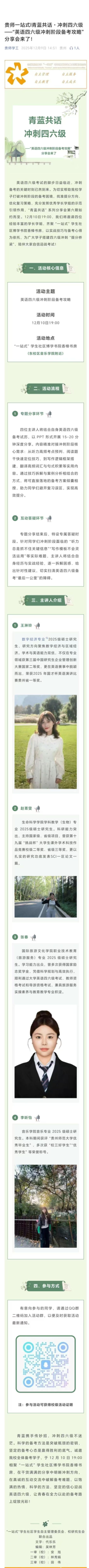 贵师一站式l青蓝共话・冲刺四六级 ——“英语四六级冲刺阶段备考攻略” 分享会来了!