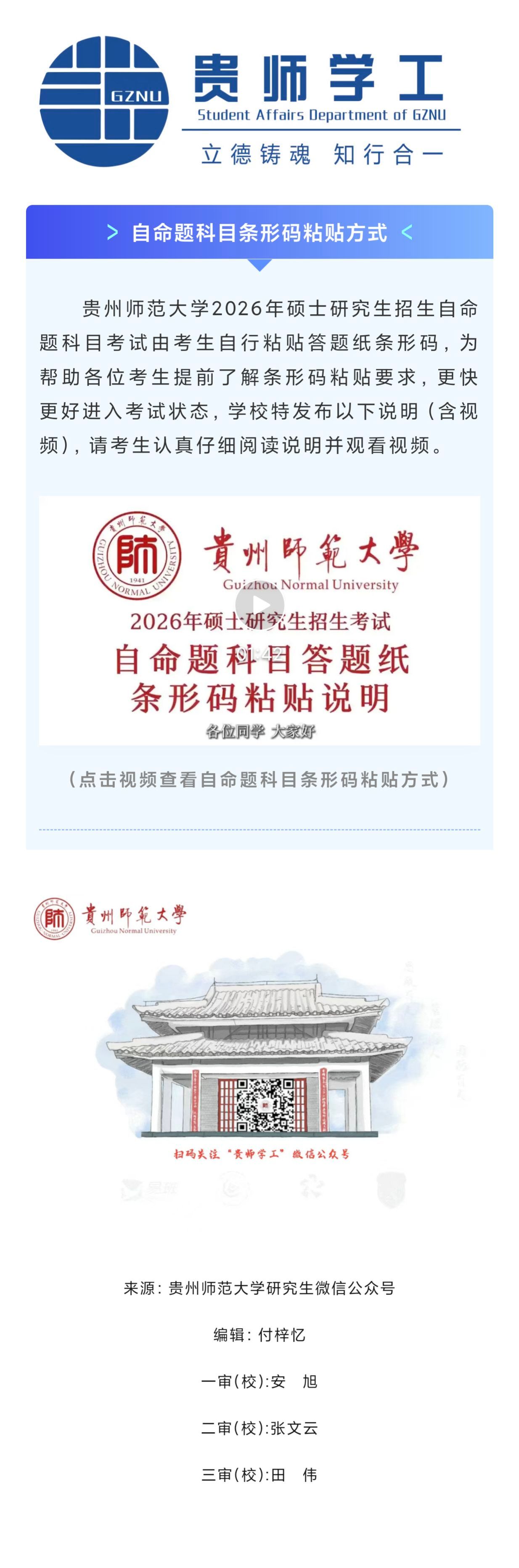 重要通知】贵州师范大学2026年硕士研究生招生考试自命题科目条形码粘贴说明