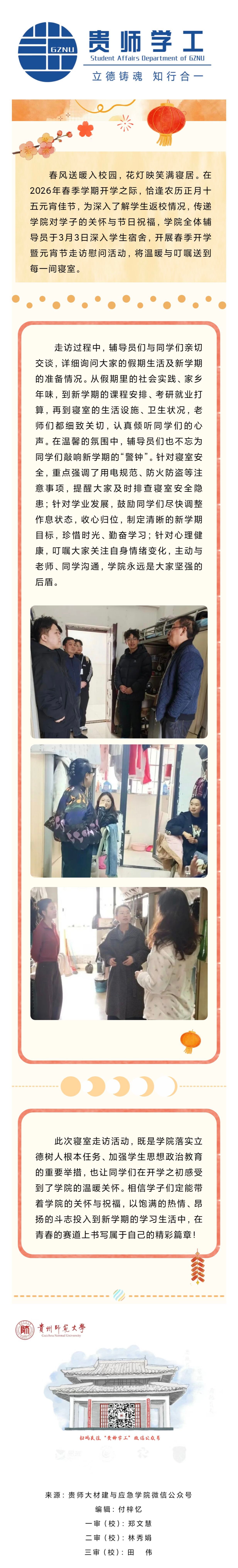 学院动态|材料与建筑工程学院(贵州应急管理学院)开展春季开学暨元宵节寝室走访活动